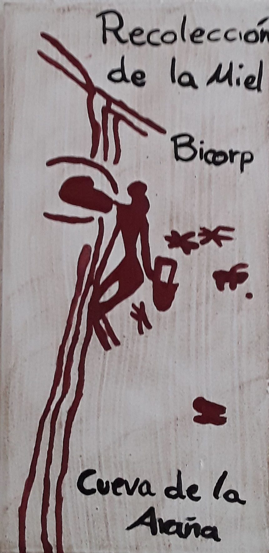 Unser Logo, das Sie auf unserem Etikett finden, ist eine uralte Höhlenzeichnung aus der Region Valencia in Spanien. Sie stellt eine Person dar (die Wissenschaftler streiten sich noch darüber ob männlich oder weiblich......... vielleicht divers..?), die auf einen Baum klettert und dort Honigwaben aus einer Baumhöhle holt und in ein mitgebrachtes Gefäß verbringt.